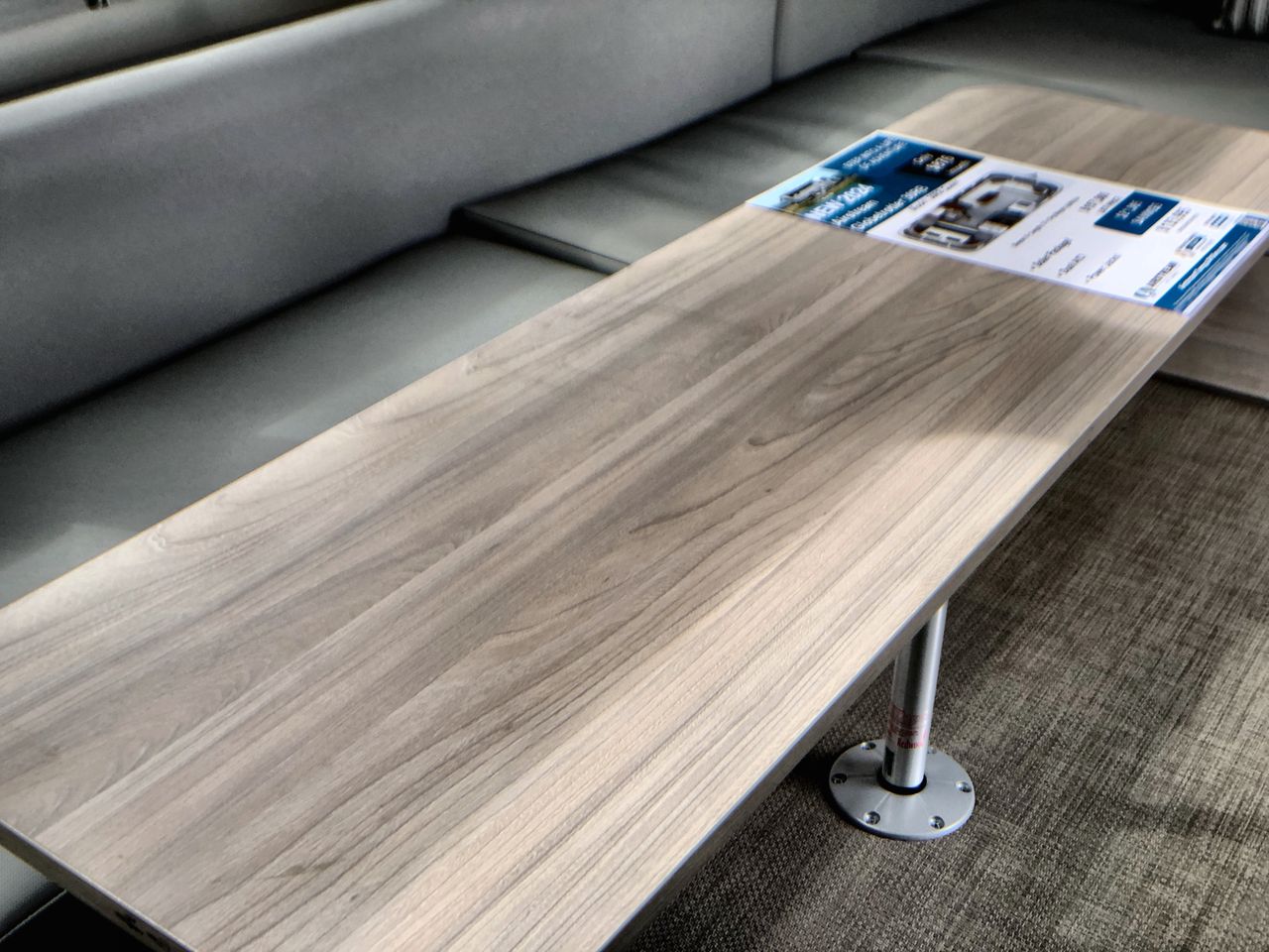 At the rear, the bedroom features a comfortable queen-size bed with plush bedding. Surrounding storage options, such as overhead compartments and spacious wardrobes, provide ample space for your belongings. Large windows allow natural light to fill the room, creating a peaceful setting for rest after a day of adventure.
