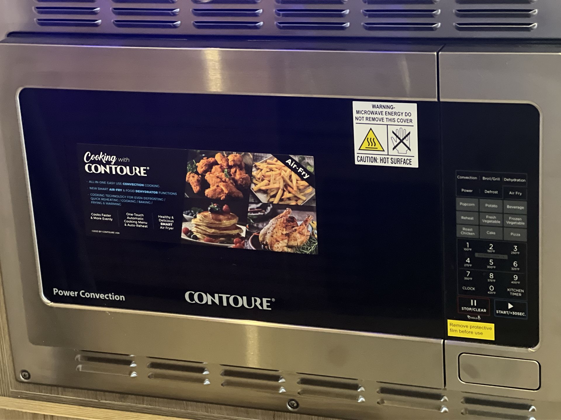 The kitchen is a standout feature, equipped with state-of-the-art appliances, including a three-burner gas stove, a large refrigerator, and a microwave oven. Plenty of storage ensures you're well-prepared for extended journeys, with overhead cabinets and drawers maximizing utility.