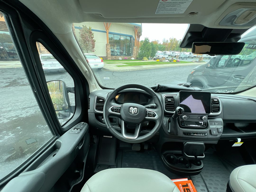 The 2025 Airstream Rangeline is a modern Class B motorhome designed to enhance your travel experiences. Built on the reliable RAM ProMaster® 3500 chassis, it features a fuel-efficient 3.6L Pentastar® V6 engine with 276 horsepower and a nine-speed automatic transmission, ensuring a smooth and responsive drive. Measuring approximately 21 feet in length, the Rangeline offers a compact yet spacious design, making it easy to maneuver through city streets and scenic byways alike. Its sleek exterior is complemented by practical features such as a 12-foot awning, providing shade and comfort during outdoor activities. Inside, the Rangeline boasts a thoughtfully designed interior that maximizes space and functionality. The flexible seating arrangement includes swiveling captain's chairs and a multi-adjustable, removable table, creating a comfortable area for dining, working, or relaxing. The galley is equipped with an all-electric refrigerator, a stowable induction cooktop, a microwave, and ample storage within soft-close, locking drawers, making meal preparation convenient and efficient. Sleeping accommodations are designed with comfort in mind. The rear features a foldable bed supported by a European suspension system, providing a restful night's sleep. For those needing additional sleeping space, an optional pop-top expands the sleeping capacity, offering a cozy area for two more passengers. The Rangeline's wet bath includes a shower, sink, and flush toilet, all within an easy-to-clean compact space, ensuring you have the comforts of home while on the road. Technology and safety are at the forefront of the Rangeline's design. The cockpit features a 10.1-inch Uconnect® touchscreen with voice command capability, Apple and Android compatibility, and in-dash wireless cell phone charging. Safety features include automatic headlamps with high-beam control, crosswind assist, drowsy driver detection, electronic stability control, and multiple safety impact airbags, providing peace of mind on every journey. With its combination of style, comfort, and modern features, the 2025 Airstream Rangeline invites you to explore the world without sacrificing the comforts of home. Embark on your next adventure with confidence in this exceptional motorhome.
