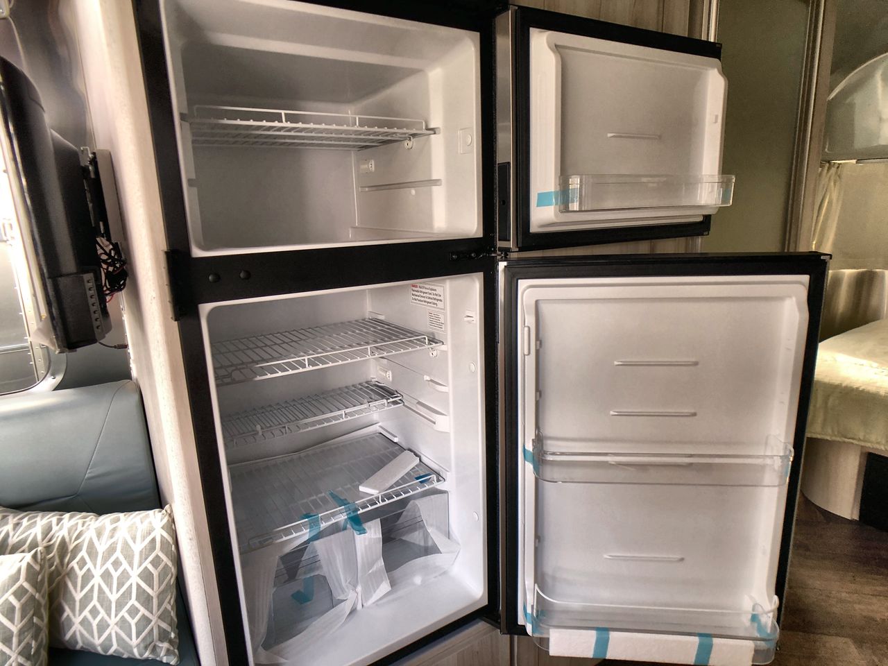 The exterior features Airstream's iconic aerodynamic aluminum design, enhancing fuel efficiency and ensuring long-lasting durability. The polished silver finish not only catches the eye but also reflects the classic Airstream look.