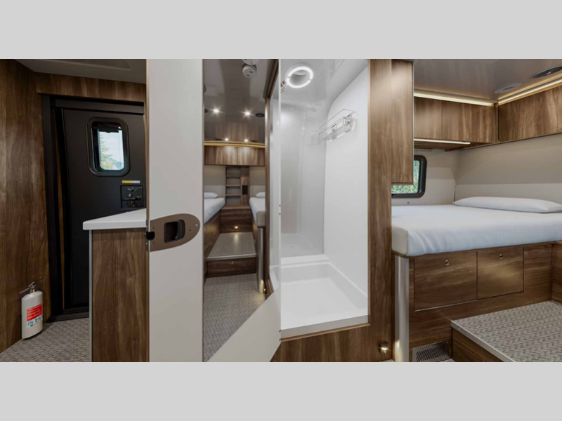 Sleeps 2 Length 24 ft 9 in Ext Width 9 ft 2 in Ext Height 10 ft 6 in Int Height 6 ft 6 in Interior Color Amber Ridge Exterior Color Hightech Silver Metallic, Ultra Premium Tenroite Grey or Hightech Silver Metallic Hitch Weight 4000 lbs GVWR 12125 lbs Fresh Water Capacity 23 gals Grey Water Capacity 31 gals Black Water Capacity 27 gals Fuel Type Diesel Engine 2.0L Turbo Charged 4-Cylinder High Output Chassis Mercedes-Benz Sprinter 4500 Horsepower 209 hp Fuel Capacity 24.5 gals Wheelbase 170 in Available Beds Two Twin Beds Torque 332 ft-lb Refrigerator Type 12V Refrigerator Size 6.6 cu ft Cooktop Burners 1 Number of Awnings 1 Water Heater Type Diesel Fired Hydronic AC BTU 15000 btu Awning Info Power Armless w/Auto-Retract and LED Lighting Gross Combined Weight 15250 lbs Shower Type Standard Electrical Service 30 amp Similar Floorplans