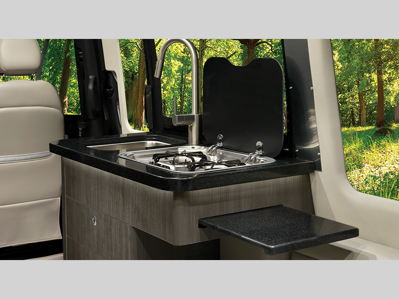 It all starts with a Mercedes-Benz Sprinter 2500 van chassis with a2.0L turbo charged with four-cylinder high output diesel engine to power your adventures. The power sofa and side seats create the bed for a night of rest, reading or just relaxing, and the multiplex controls put you in control of the coach's functions with the push of a button. A spacious, versatile wet bath comes standard, along with solid surface countertops with backsplash, Ultraleather seating, matte finish laminate cabinetry, and many more luxurious features.